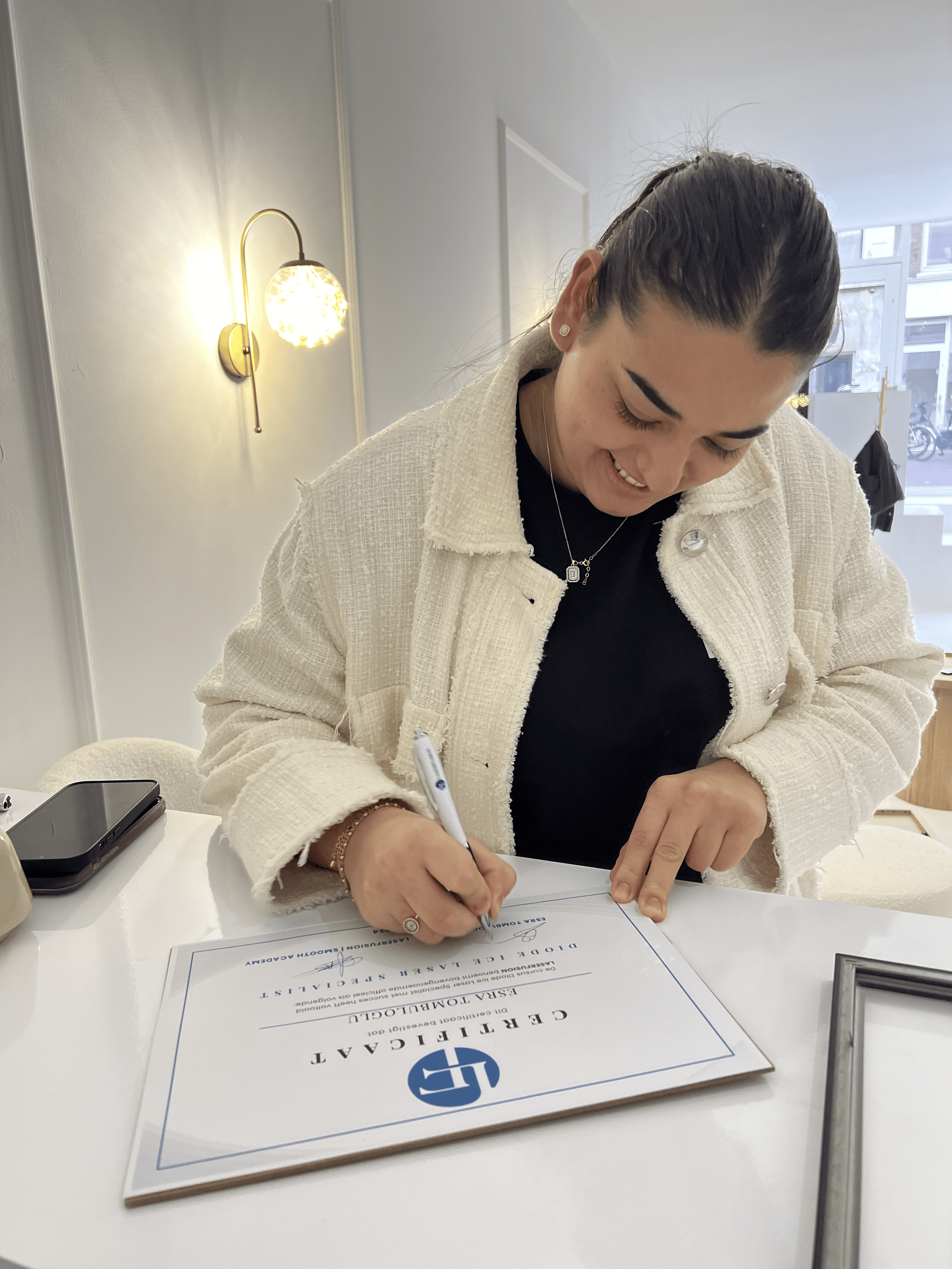 Na succesvolle afronding ontvangt u een officieel certificaat dat bevestigt dat u bevoegd en gekwalificeerd bent om veilige en hoogwaardige laserbehandelingen uit te voeren binnen uw salon of kliniek.