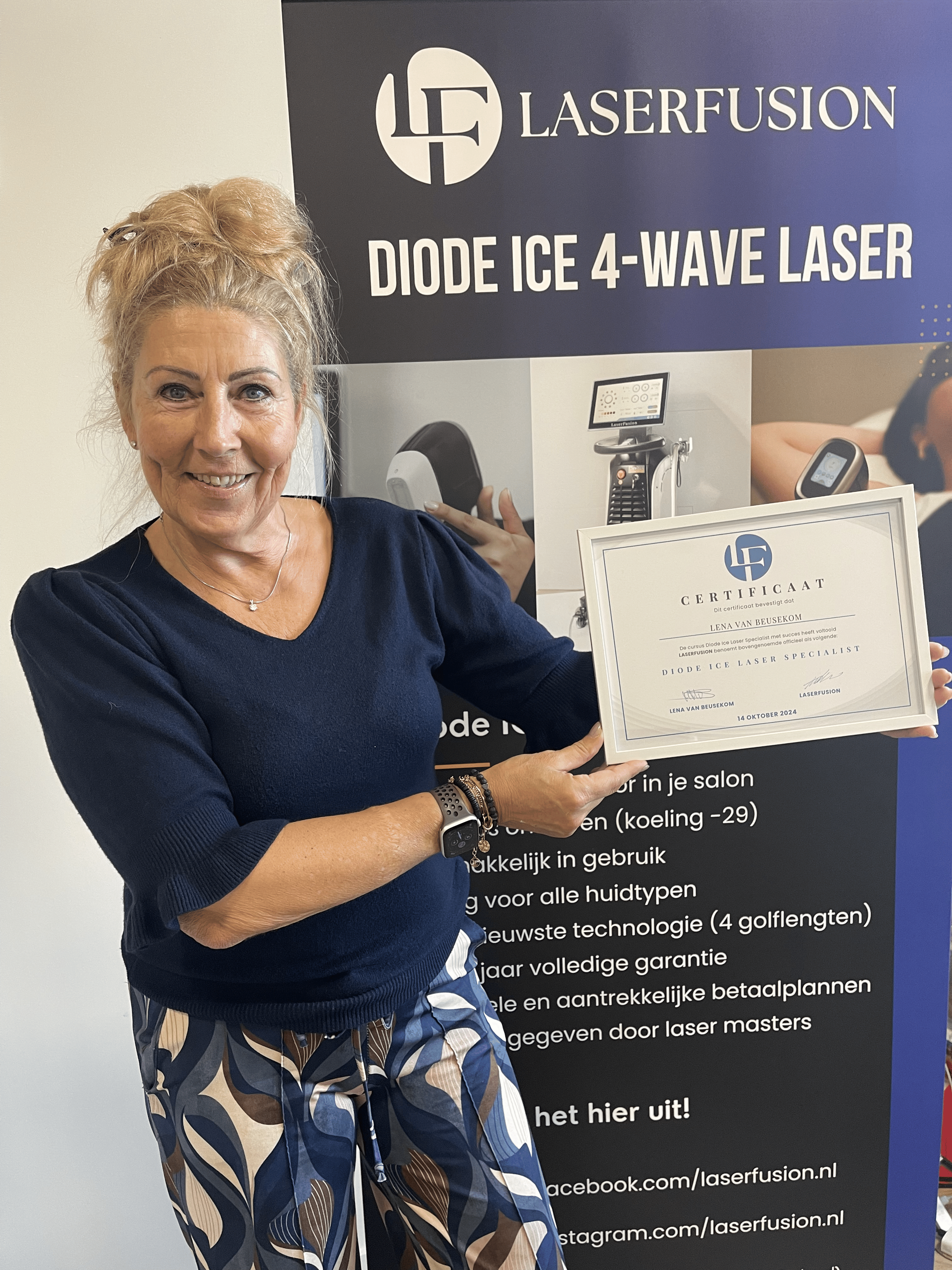 "Ik heb bij LaserFusion de Diode 4 wave aangeschaft en daar ben ik tot nu toe al heel blij mee! De cursus was fijn en ook zo voorbij gevlogen."